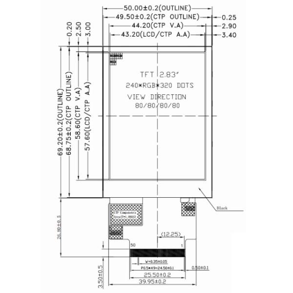 ![]() | The display module has an external size of 50*69.2*4 mm and an active area of 43.2*57.6 mm, which is suitable for integration in compact devices. CH280QV22F-CT supports SPI, RGB, and MCU interfaces for easy connection with other devices. At the same time, the module is equipped with a capacitive touch panel, and the touch interface is I2C, which enhances the user interaction experience. | |